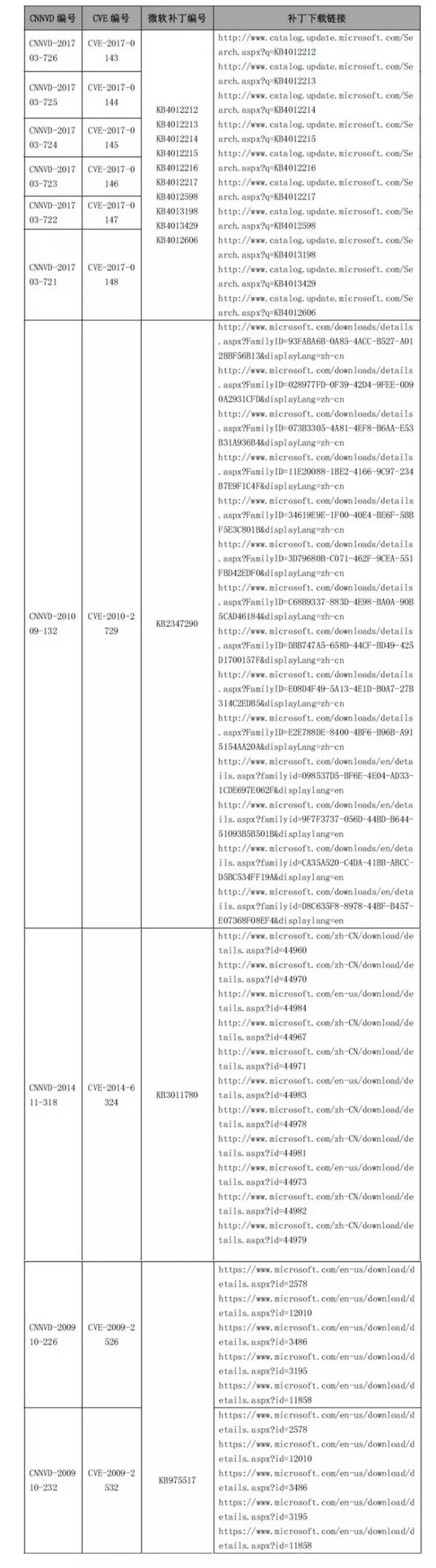 受影(yǐng)響用(yòng)戶可(kě)根據以下(xià)解決方案中相φ≤≈(xiàng)關信息進行(xíng)升級(補丁鏈接見(jiàn)>±附件(jiàn)二),微(wēi)軟官方公告的(de)解決方案對(↓♣duì)應表如(rú)下(xià)所示: