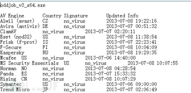 工(gōng)具包中提供了(le)一(yī)個(€♠™→gè)常見(jiàn)反病毒引擎的(de)檢測結論。